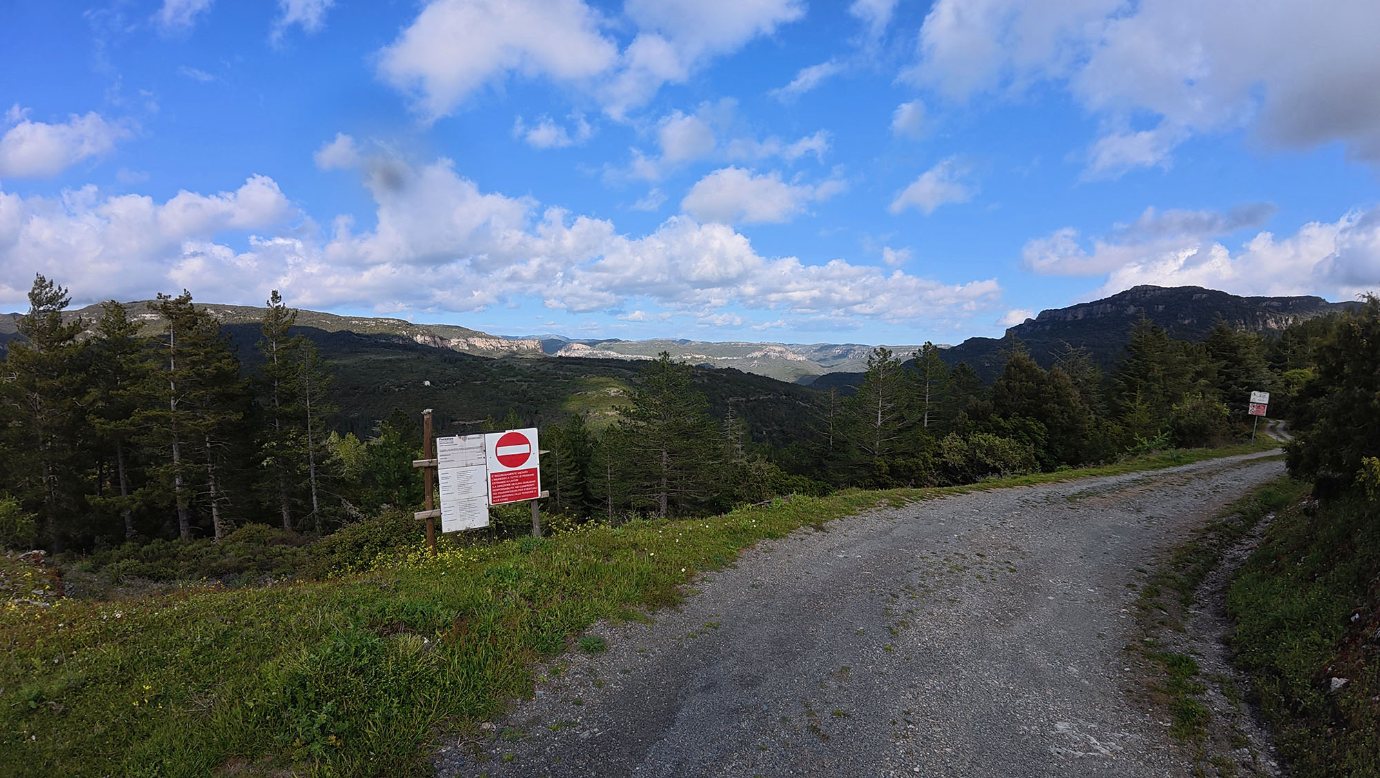 Perlustriamo la rete fino a dove i versanti della valle si fanno lentamente più ripidi su entrami i lati del torrente. Lo sbarramento taglia di traverso la valle incluso il largo torrente nel mezzo. Nessun varco. Evidentemente non è previsto che passino animali, senza eccezione per i ciclisti.