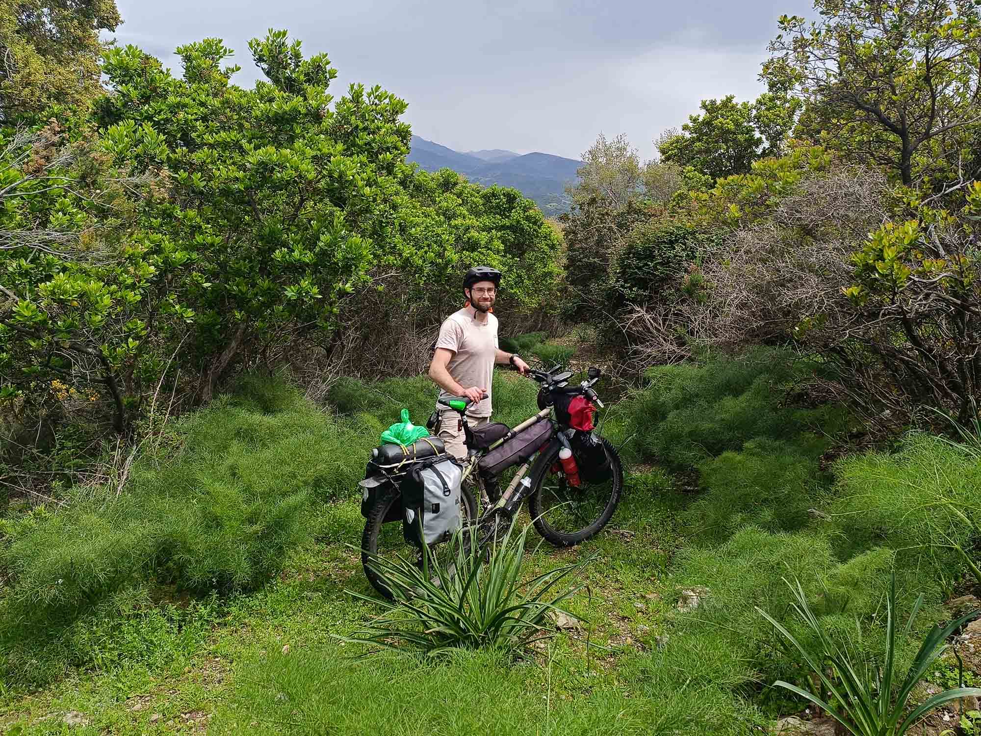 Appoggiamo le nostre bici contro le belle pareti in pietra del bivacco solo sul finire del crepuscolo, quando già possiamo riconoscere Oliena nella punteggiatura gialla sotto di noi.